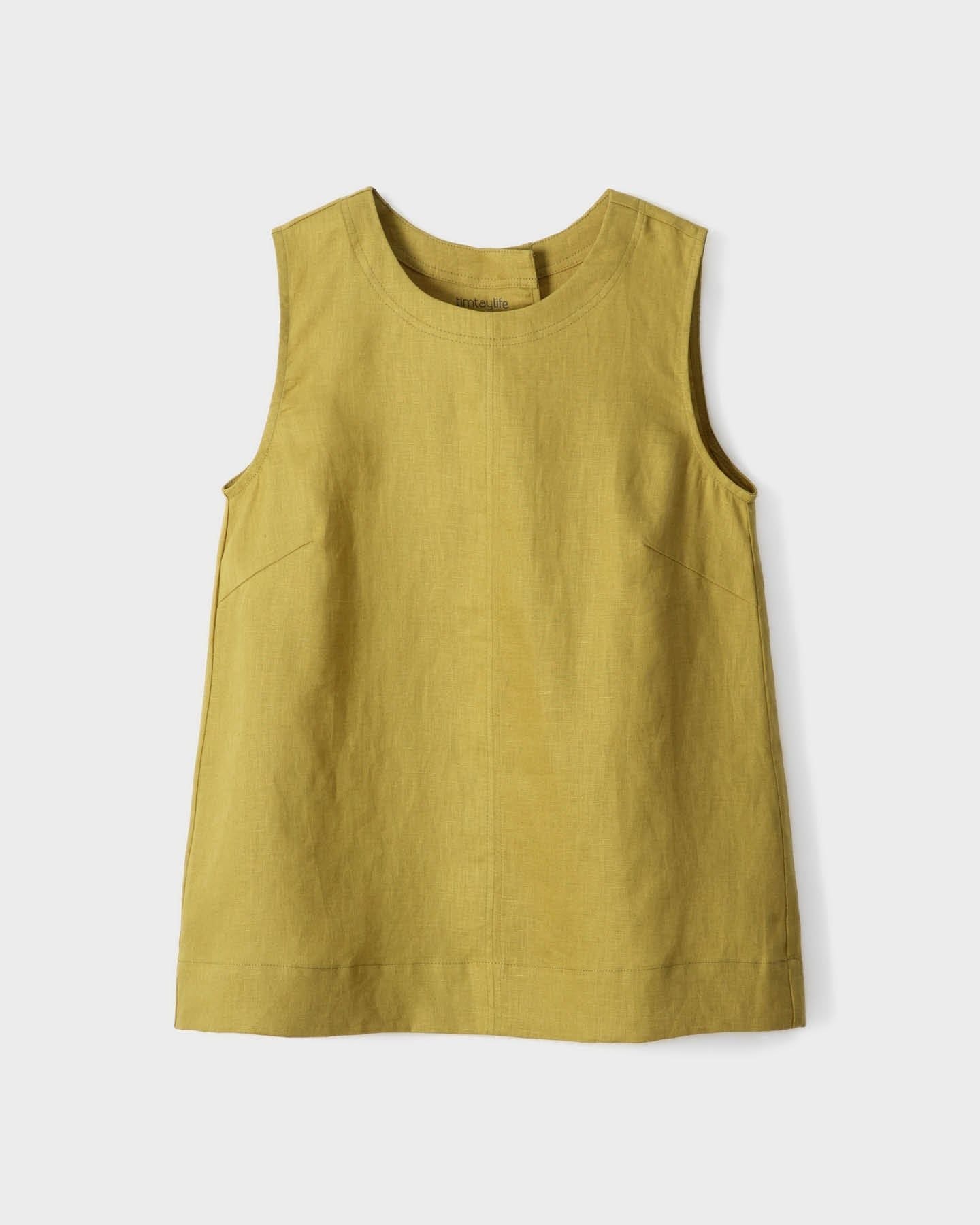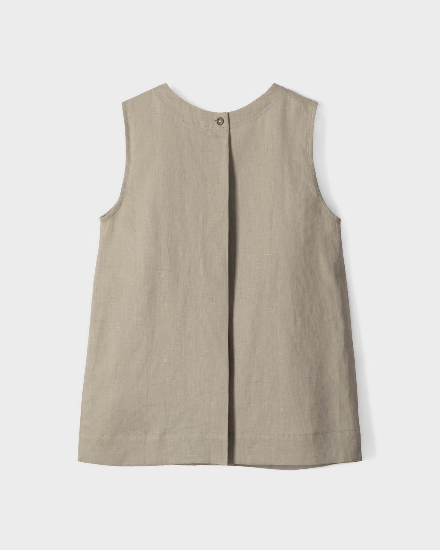 Áo Linen Cổ Tròn Sát Nách Xếp Ly