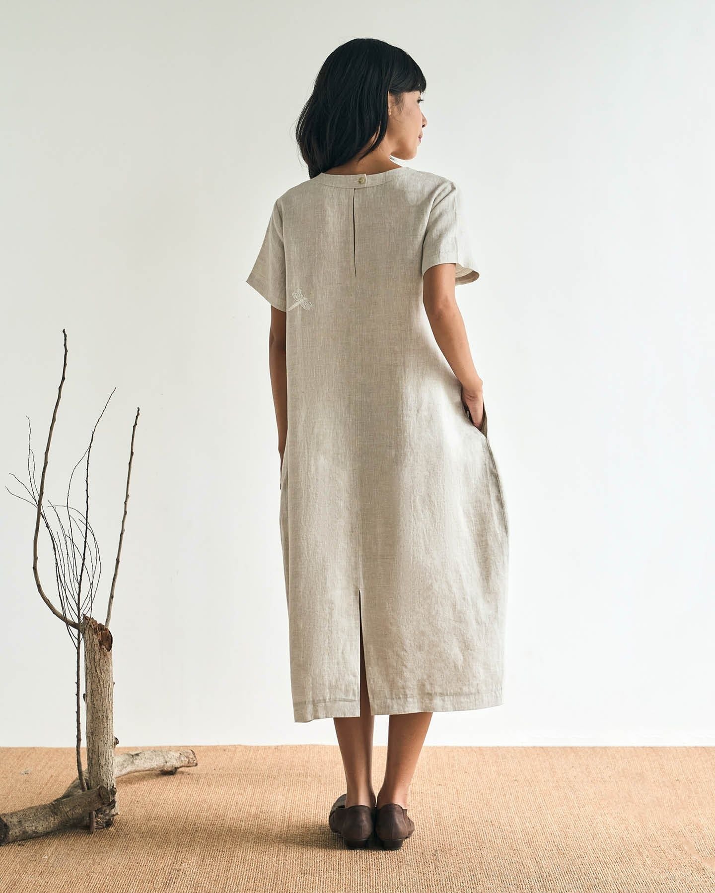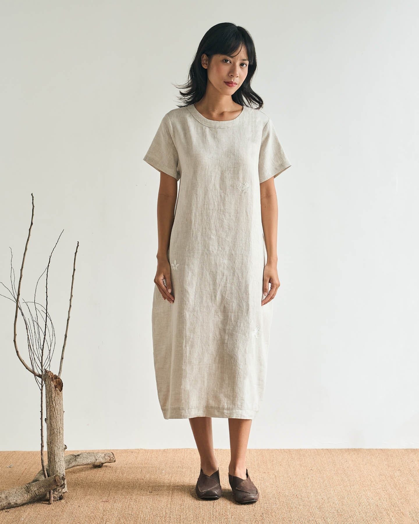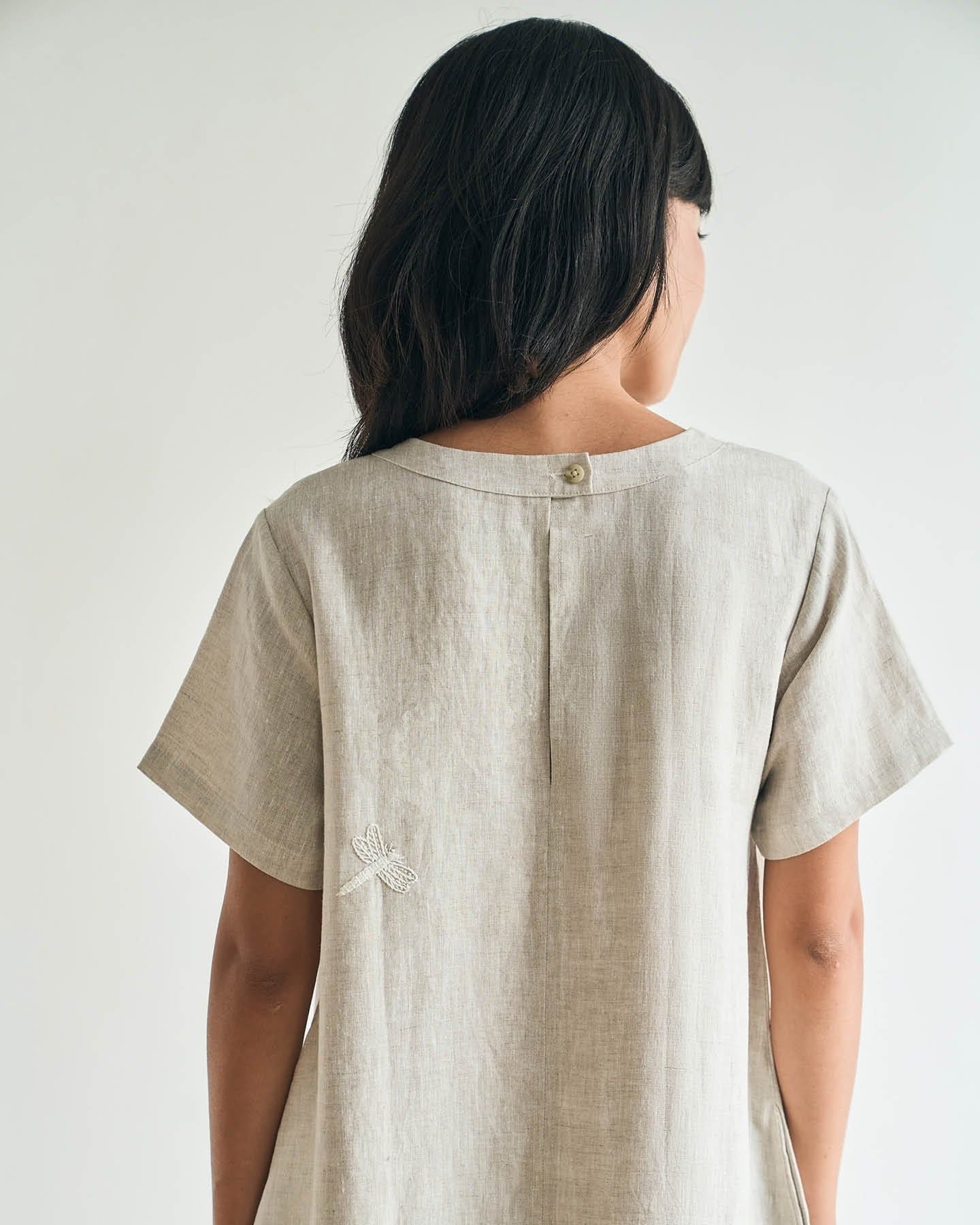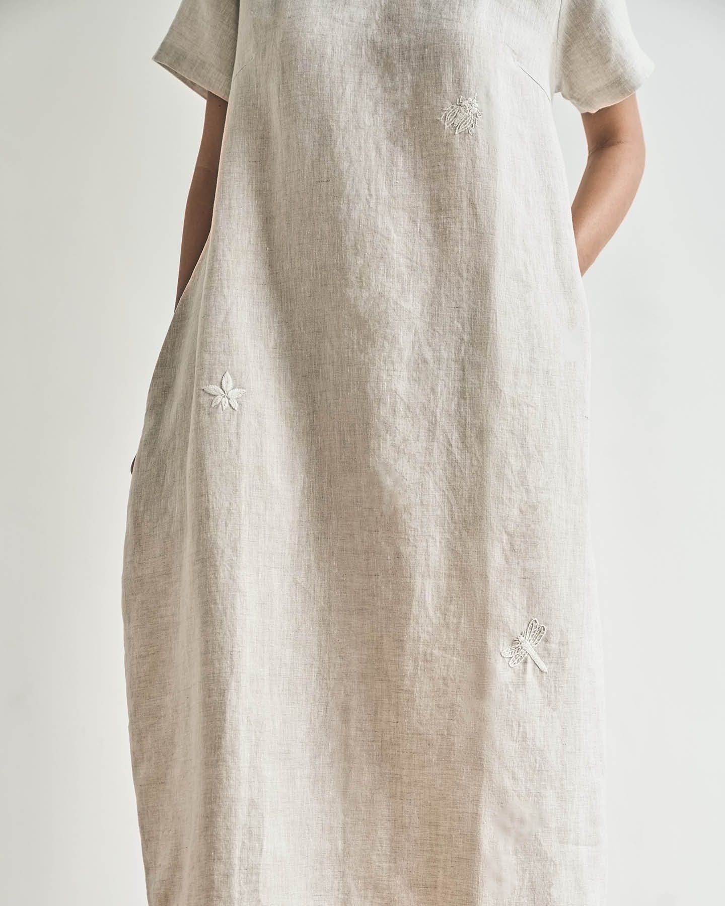 Đầm Linen Côn Trùng tay ngắn