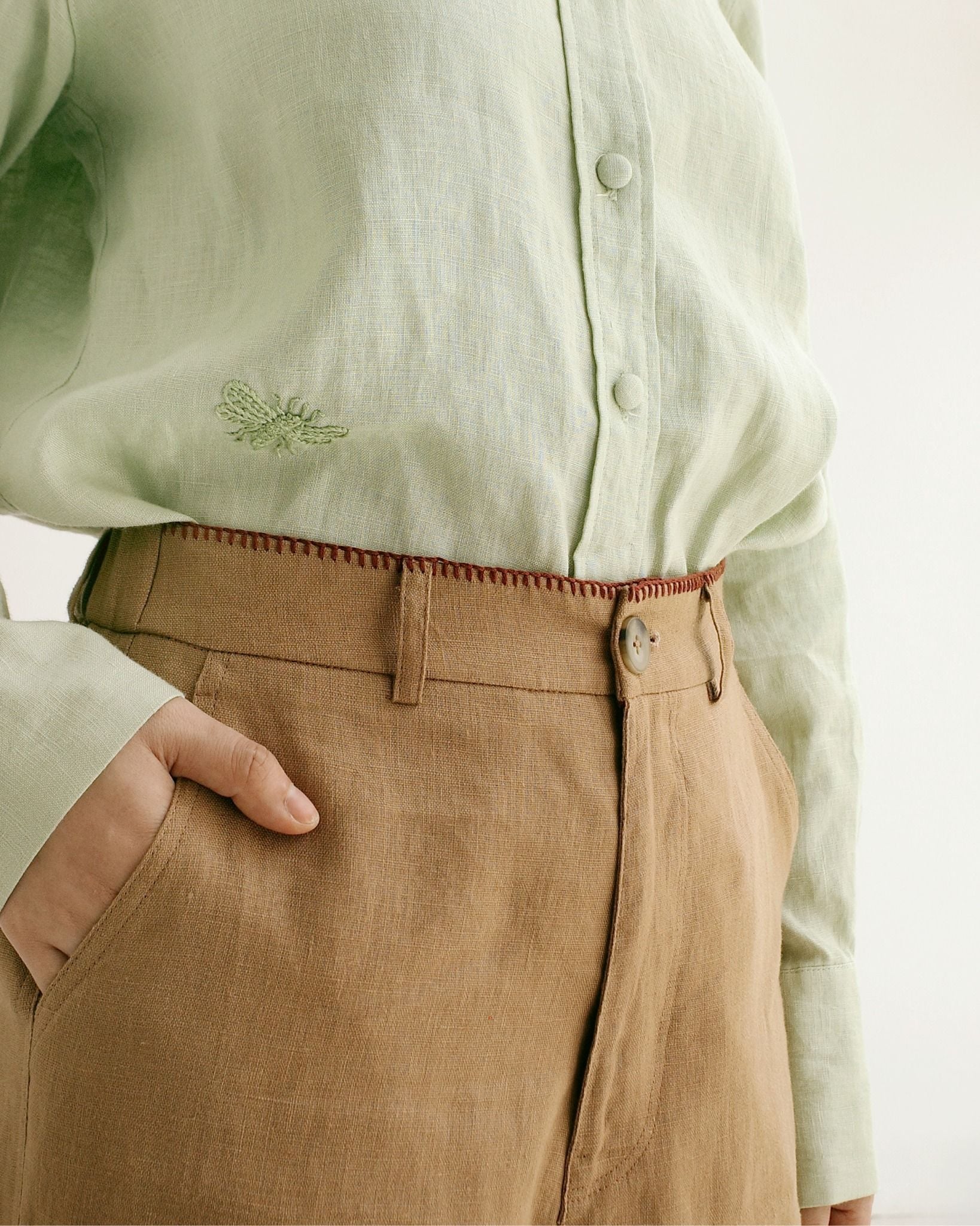TimTay sử dụng chất liệu 100% linen cao cấp. Mỗi thiết kế đều đã trải qua bước xử lý vải cẩn thận trước khi may, giúp chất vải trở nên mềm mại, không co rút.